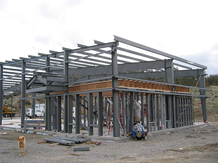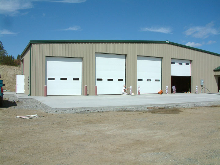 This metal building was planned and constructed to provide vehicle storage and maintenance area for the Columbus Substation Facility of Beartooth Electrical Co-op, Red Lodge, Montana. In addition to providing vehicle space, a 400 s.f.± office space was created with a small kitchennette and toilet and shower room. A loft was created above the office space for miscellaneous storage needs and featured a removable rail system for easy access. Another unique feature was an interior perimeter concrete curb poured continuous to aid in clean-up by protecting the base of the structure from water. |